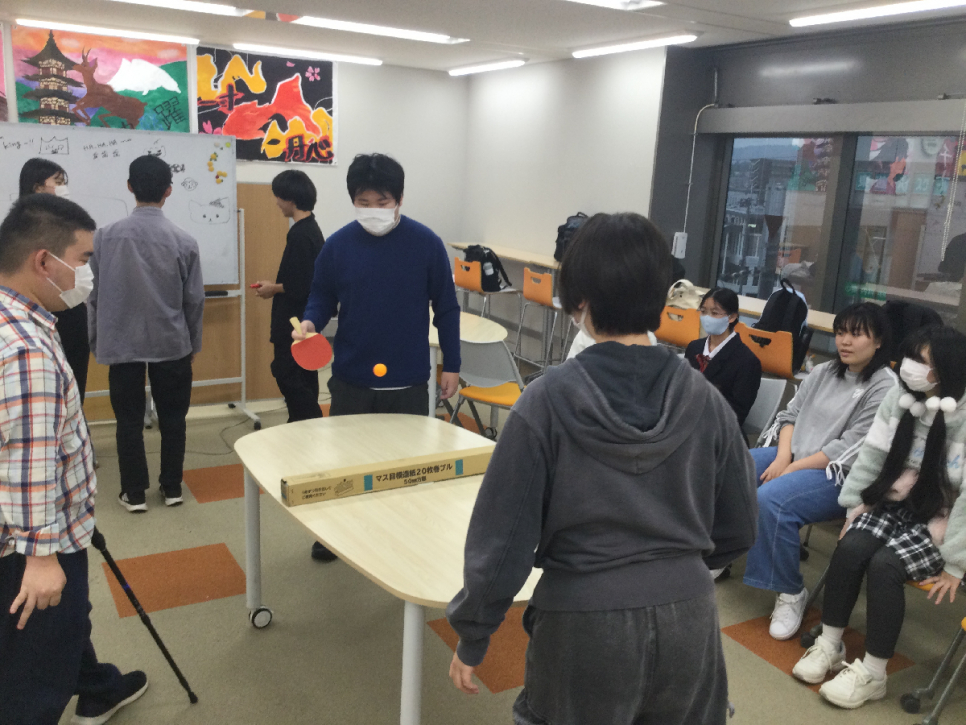 今回のスポーツサークルは、雨が降っていたので奈良キャンパス内で卓球を行いました✨