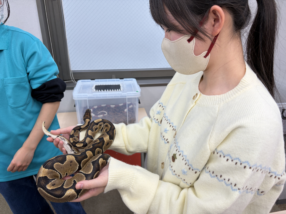 動物のふれあいコーナーでは、専門学校生の皆様が丁寧に解説してくださり、生徒たちがワイワイ楽しみながら、抱っこして触れ合うことができました!めったに触れないヘビなどの小動物もいて、生徒も職員も大興奮でした!!