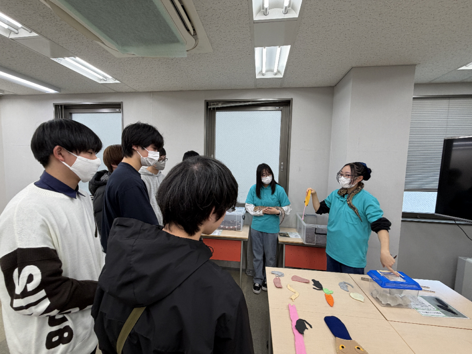 専門学校の講師の先生からは、動物飼育員の仕事についてお話をしていただき、「治療や健康チェックのために、動物に麻酔をする時には吹き矢を使う」というお話にはみんな興味津々で聞き入っていました。実物も作って持ってきてくださり、ありがとうございました!
