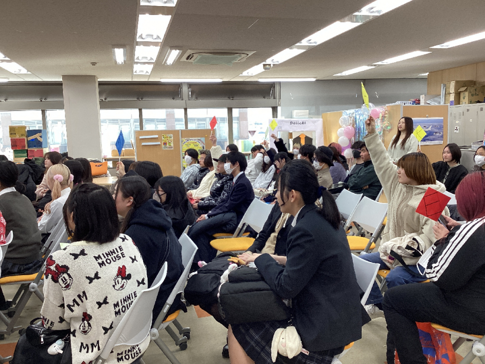 有志には、イベント委員による「クイズ大会」、音楽サークルによる「ミニライブ」、漫才コンビ「だいこん」、3年生バンドによる「演奏」と大盛り上がりでした✨