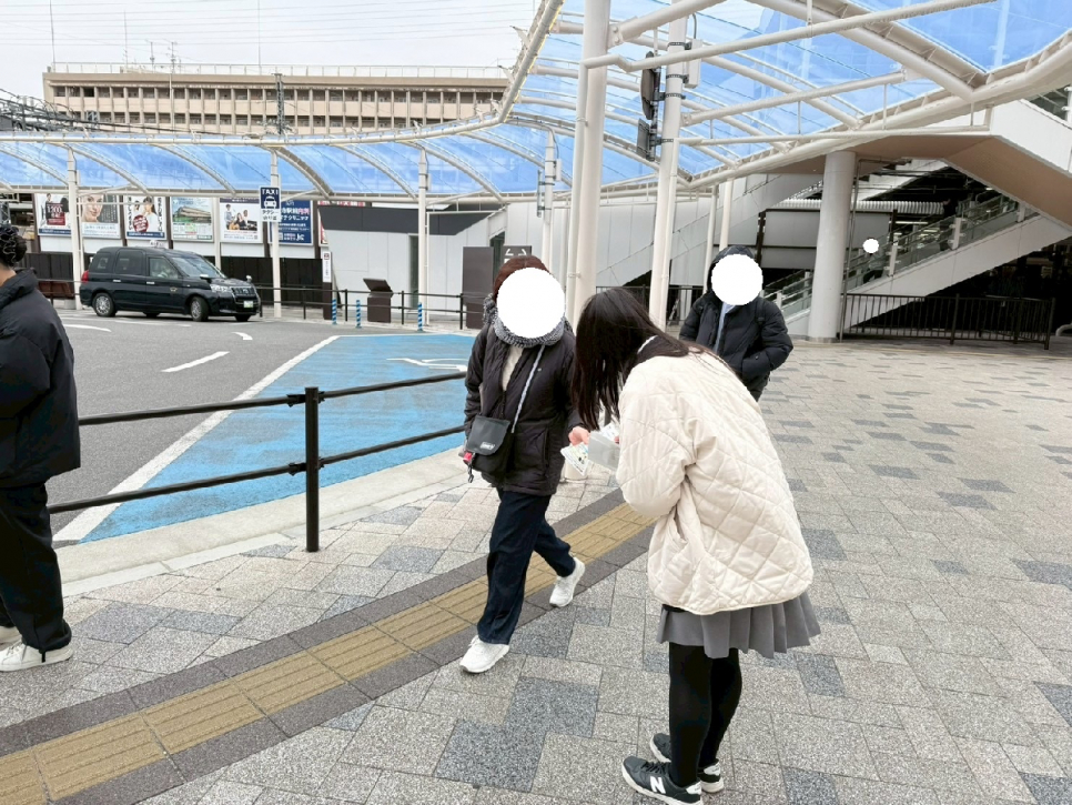 らくだ広場前の通路と大和西大寺駅の改札前とロータリーのところで行いました(*^-^*)