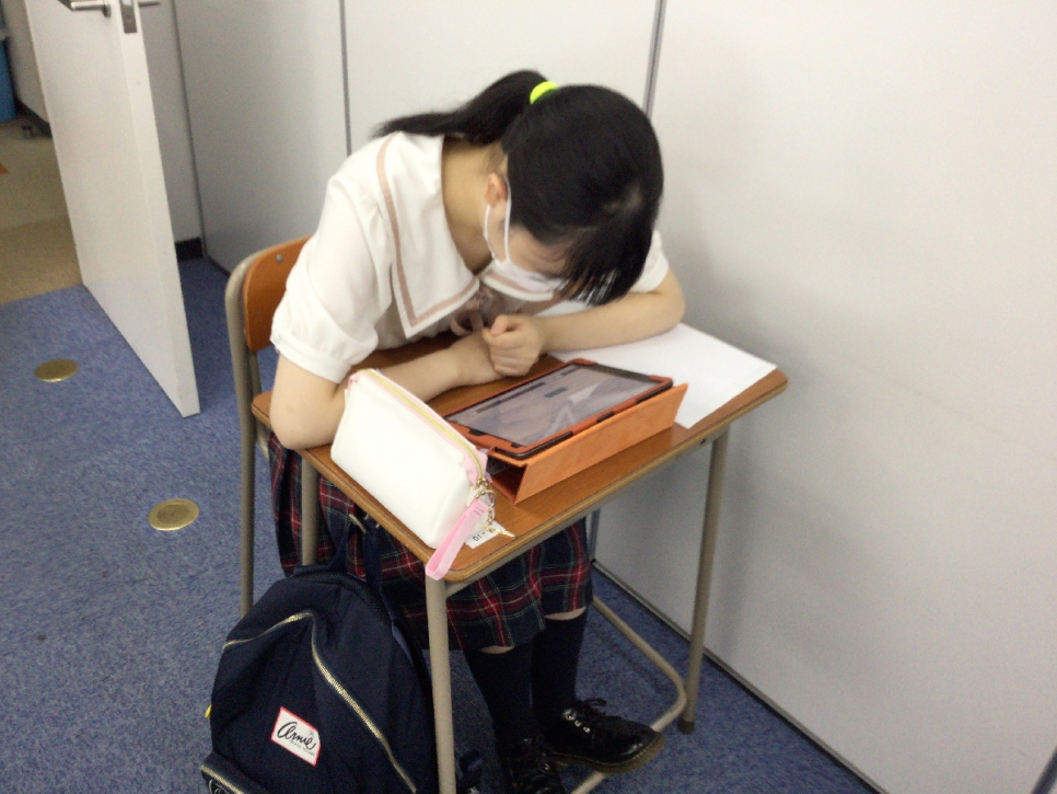 タブレットで問題を解いています!