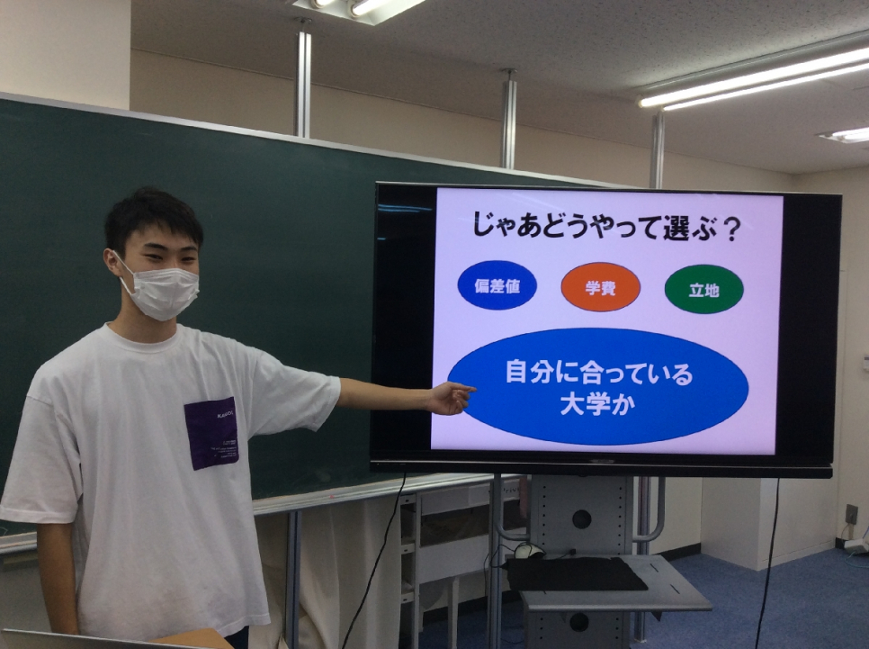 どのように進路に対して向き合ったのか、そしてどんなことを大切にしながら大学を選んだのか、など実体験を基に話してくれました。