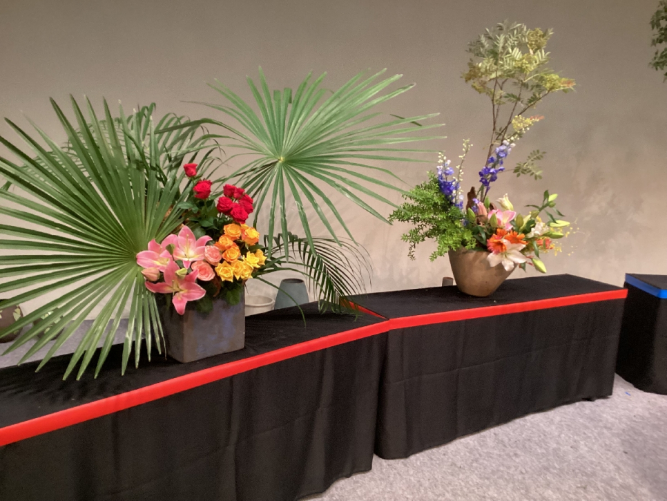 新潟キャンパスから参加した二人が、5分間という短い制限時間で花をいけることで