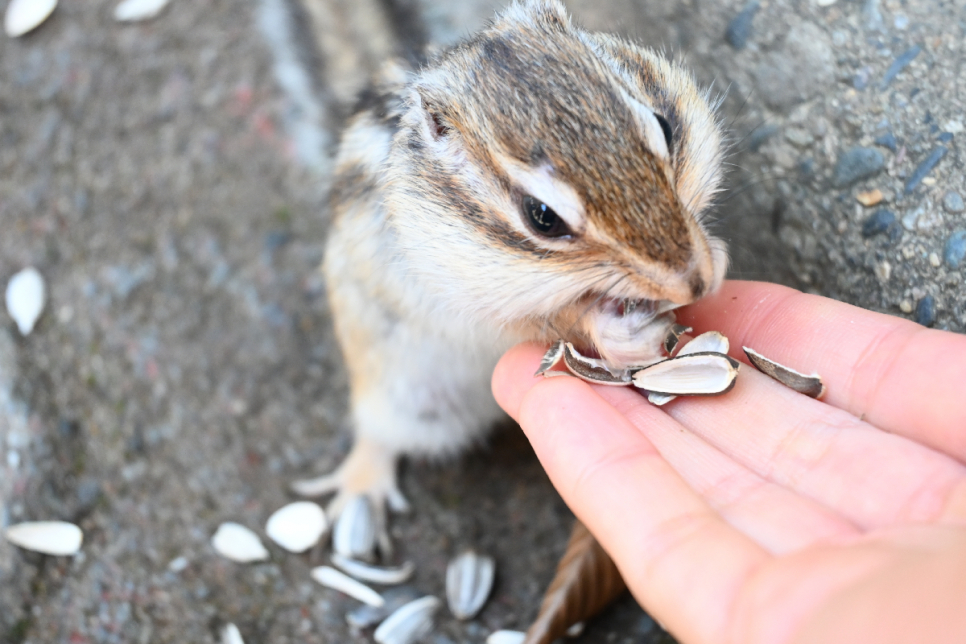 リス園で餌やりをしてふれあったり