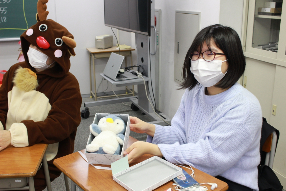 かわいいペンギンのぬいぐるみのプレゼントでした☆彡(隣のトナカイ、実は先生なんです…(笑))