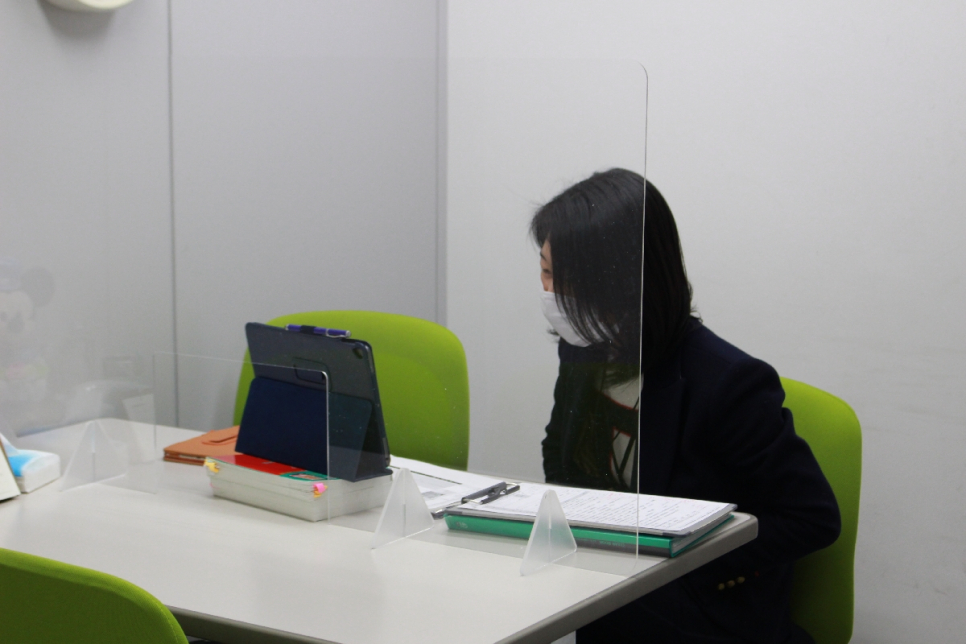 オンライン相談の様子です。面談時にもパーテーションがあるので安心です*