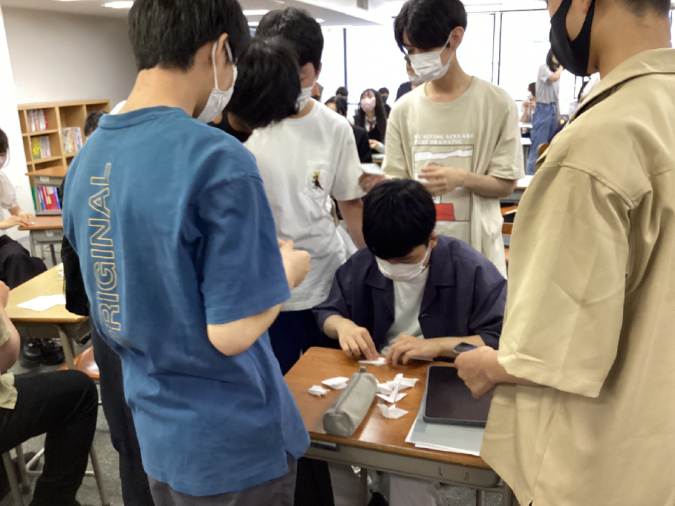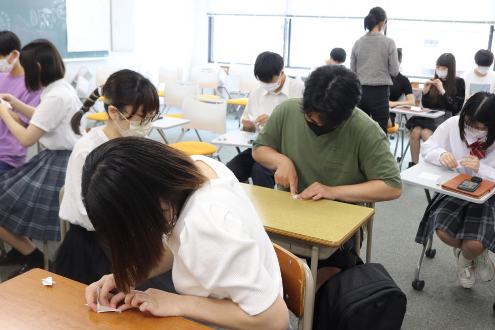 折り方が分からないと、ともに教え合いながら折ってくれた生徒、
