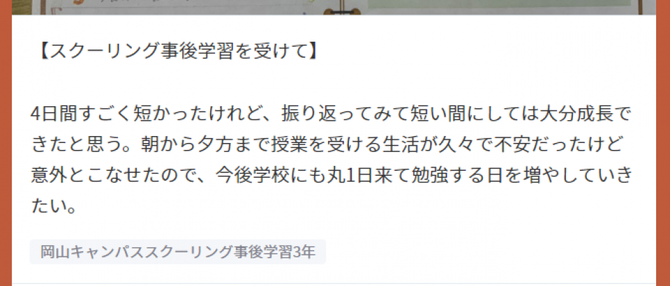 それでもみんなスクーリングに挑戦できたこと、