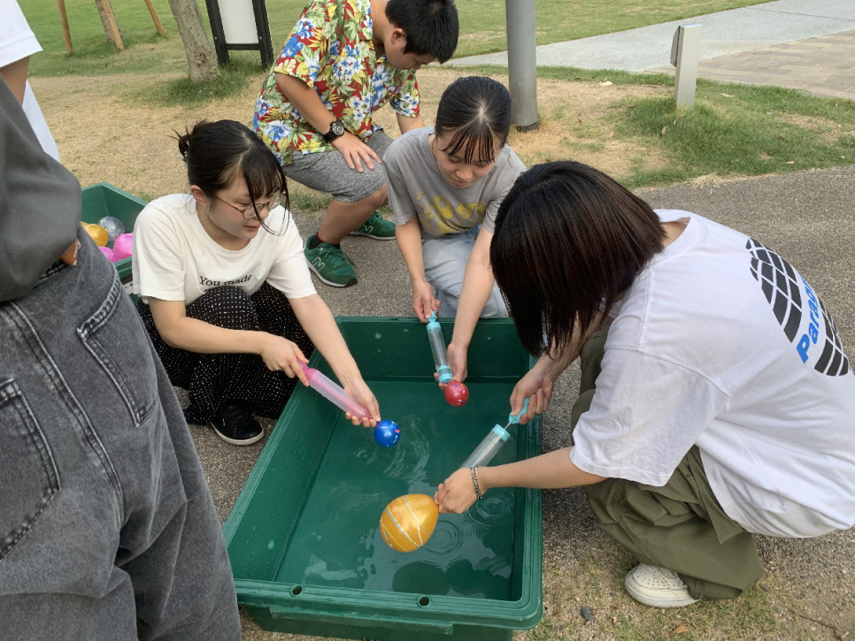 ヨーヨー釣りの準備をしている様子