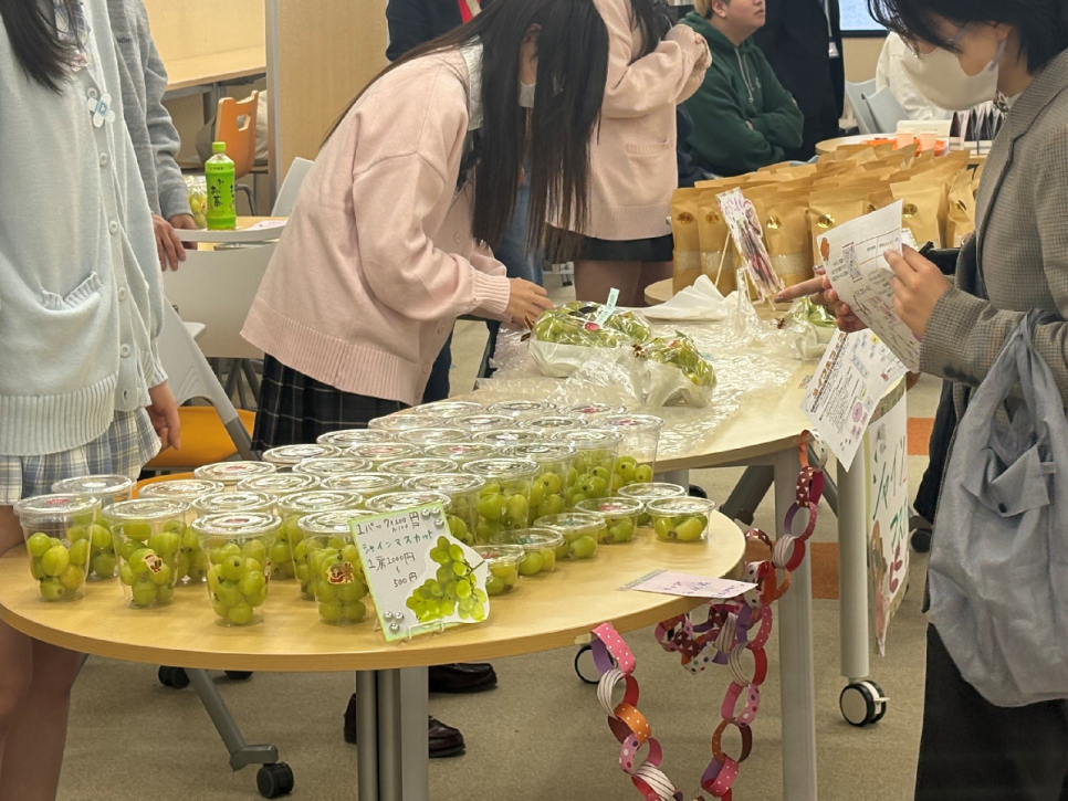 保護者の方による新米とシャインマスカットの販売ブースでは、開始直後に行列が出来ていました!