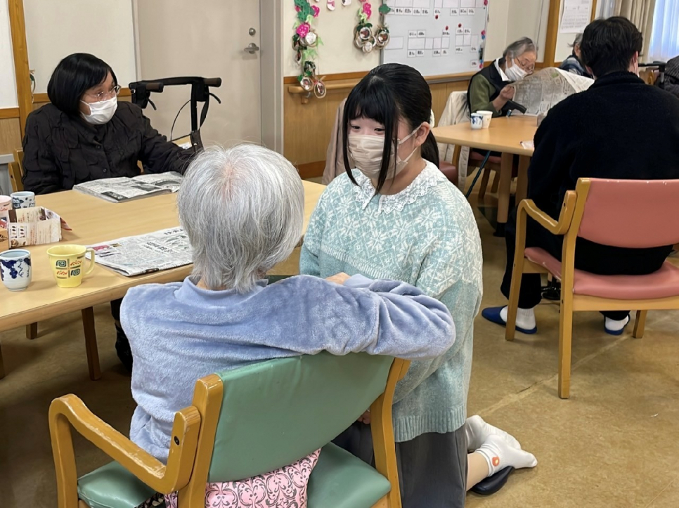 入居者の方々と、昔の思い出や日常の出来事などを楽しくお話しました。