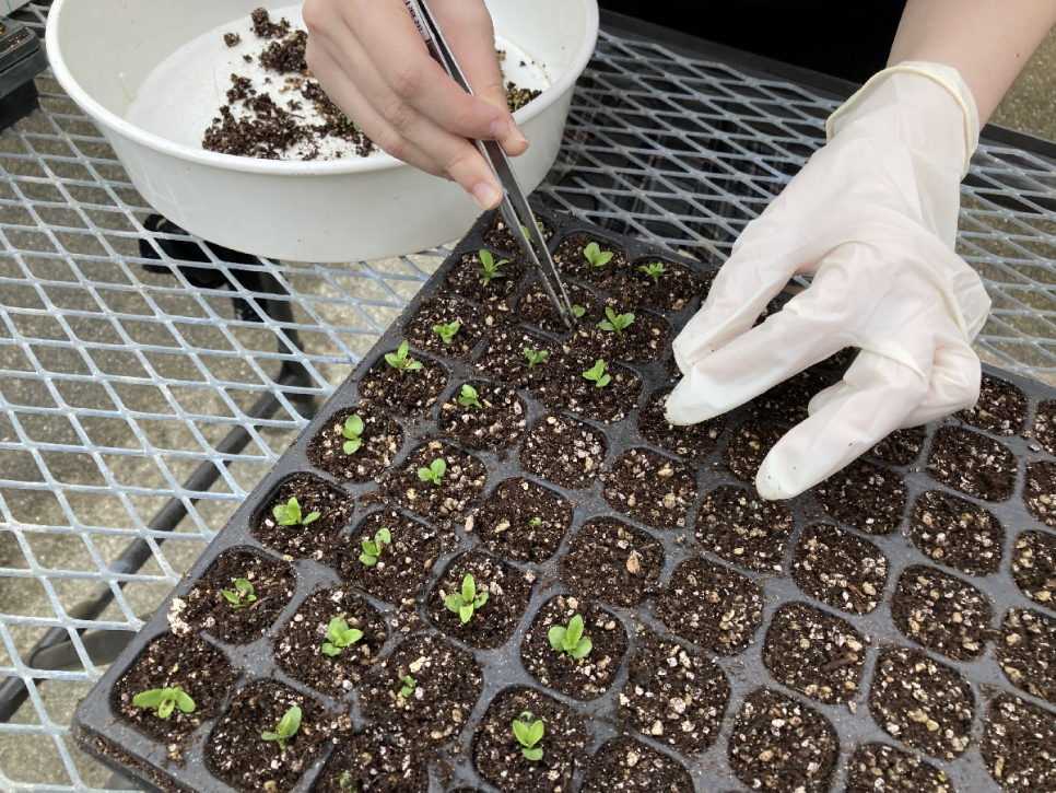 今回は小さく芽吹いた目をピンセットで一つひとつ専用のポットへ