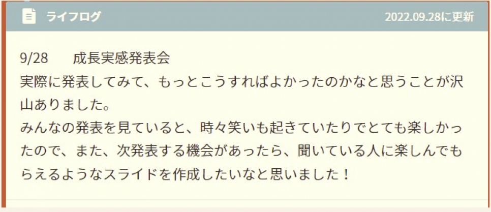 ほんの一部の紹介でしたが、皆、発表会を終えた後の“手ごたえ”を感じてくれていました!