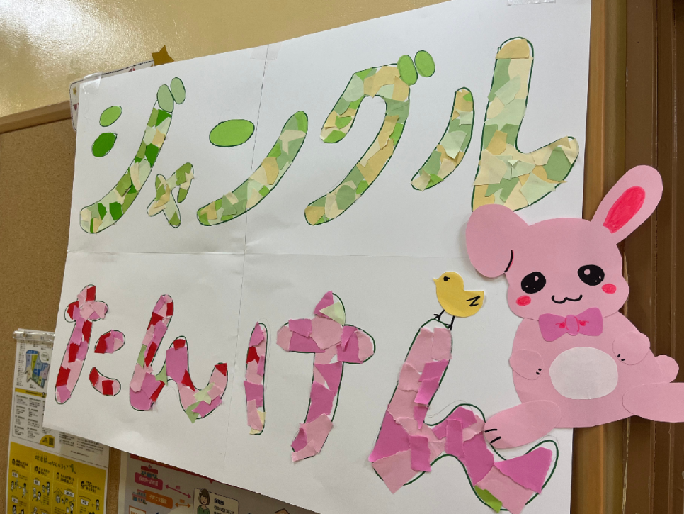 準備から進めるのは大変でしたが、「子どもたちに楽しんでもらうにはどんなものを作ったらいいのか」「小さい子たちにジャングルを感じてもらうにはどんな装飾を作ったらいいか」など話し合って考える良い機会になりました✨