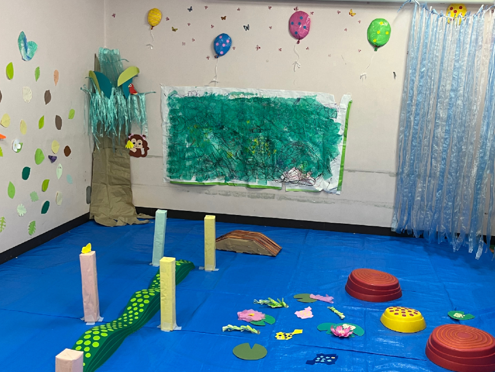 みんなでアイディアを出し合い、立派なジャングルが完成しました♩