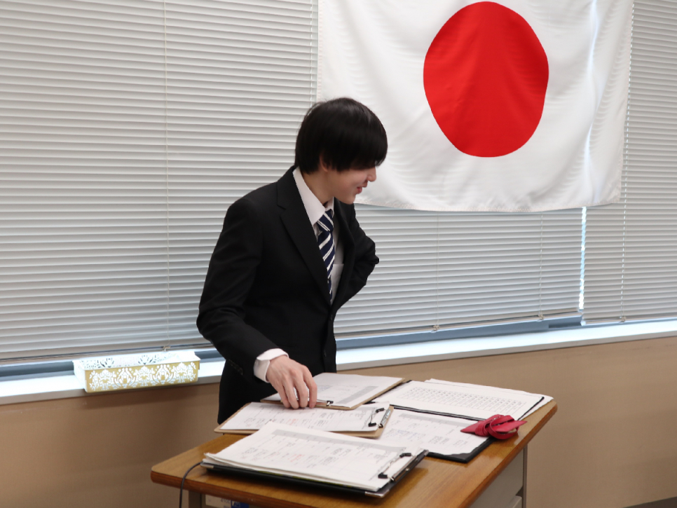緊張の中、ひとりひとり前へ出て入学許可証を受け取ることができました♪