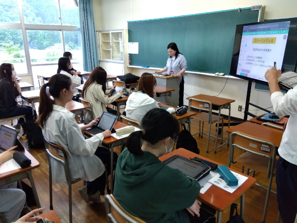 本校に到着後、開校式に参加し、さっそく授業です!