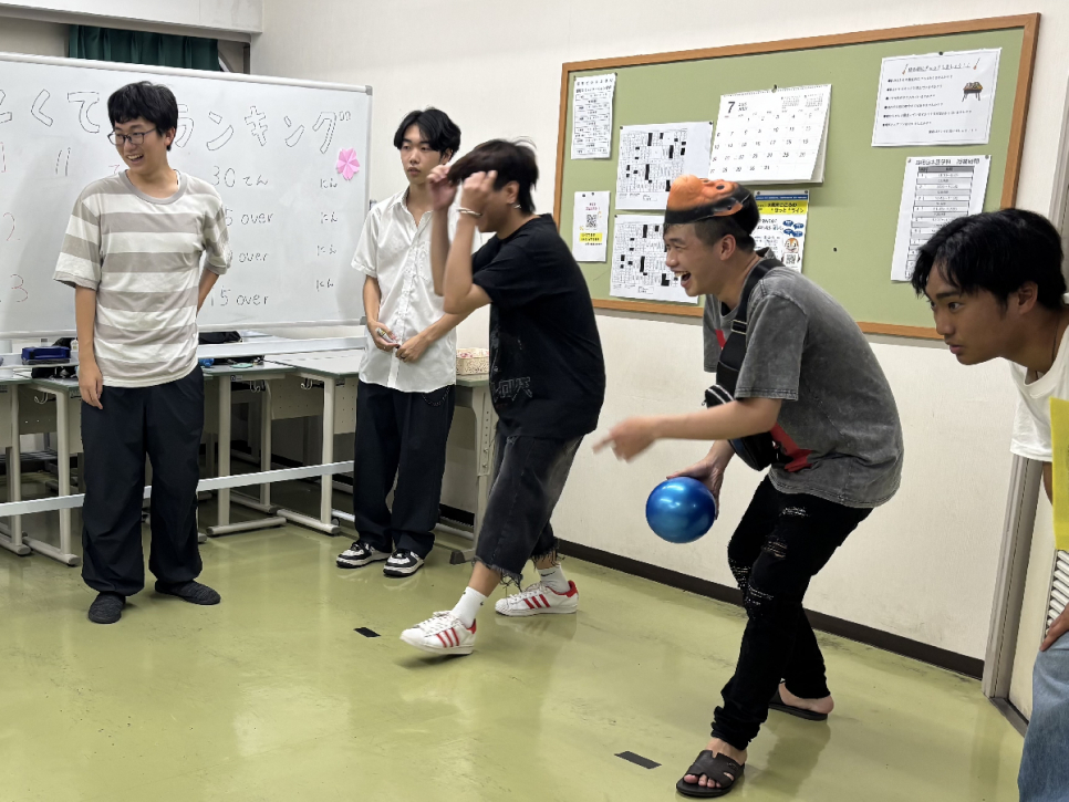 大阪キャンパスの生徒たちは、自作のボウリングゲームをブース出展し、たくさんの外国人留学生の方々に遊びに来ていただきました!