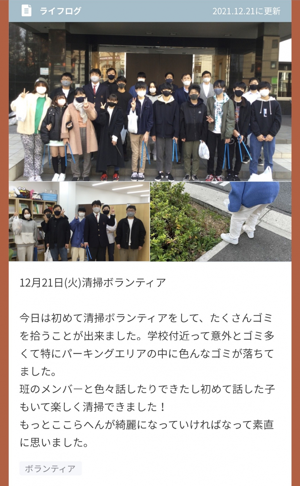 「班のメンバーと楽しく掃除ができた!」「もっとこの街がきれいになればいいな」と前向きな感想を書いていた初参加の生徒も(^^)/