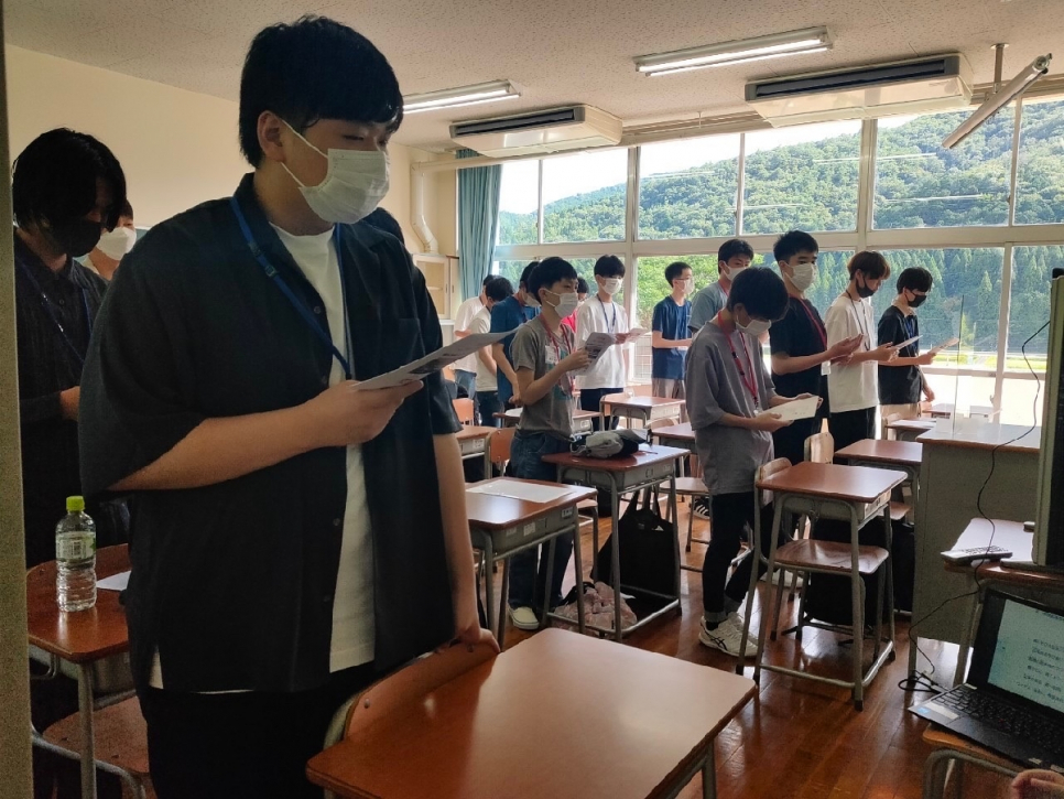開講式では校歌を清聴しました