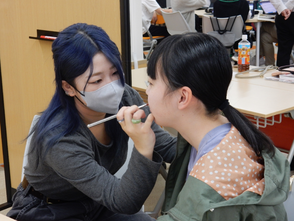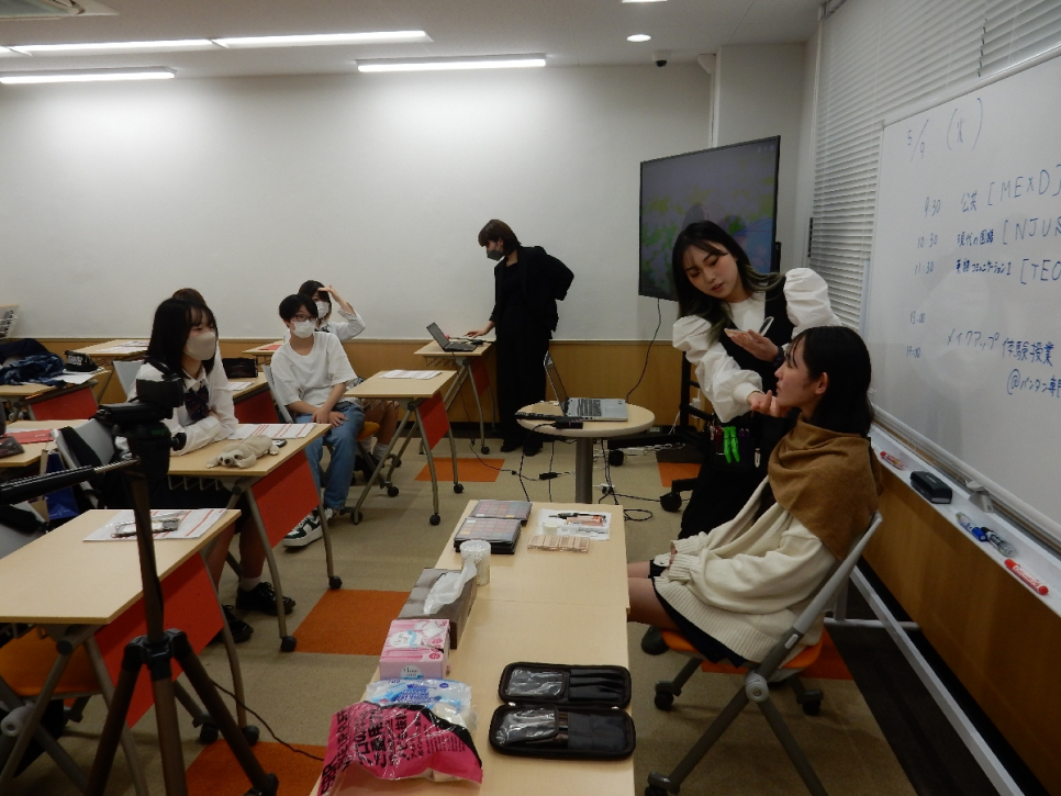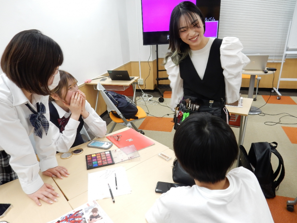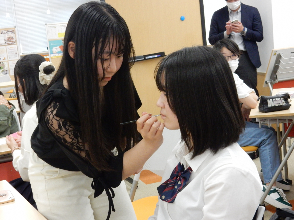 生徒たち同士でメイク体験!
