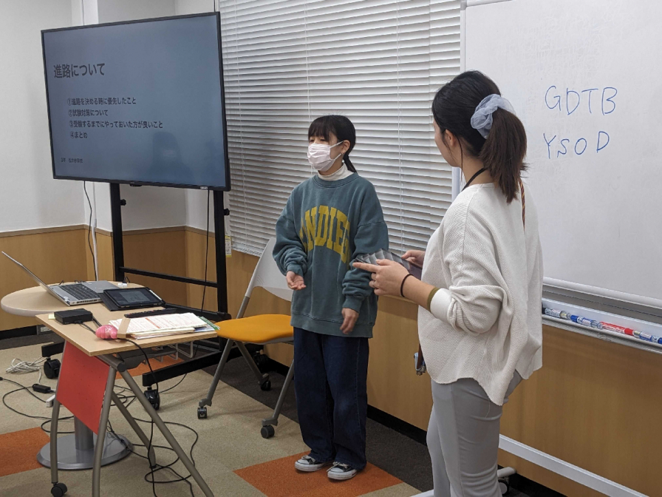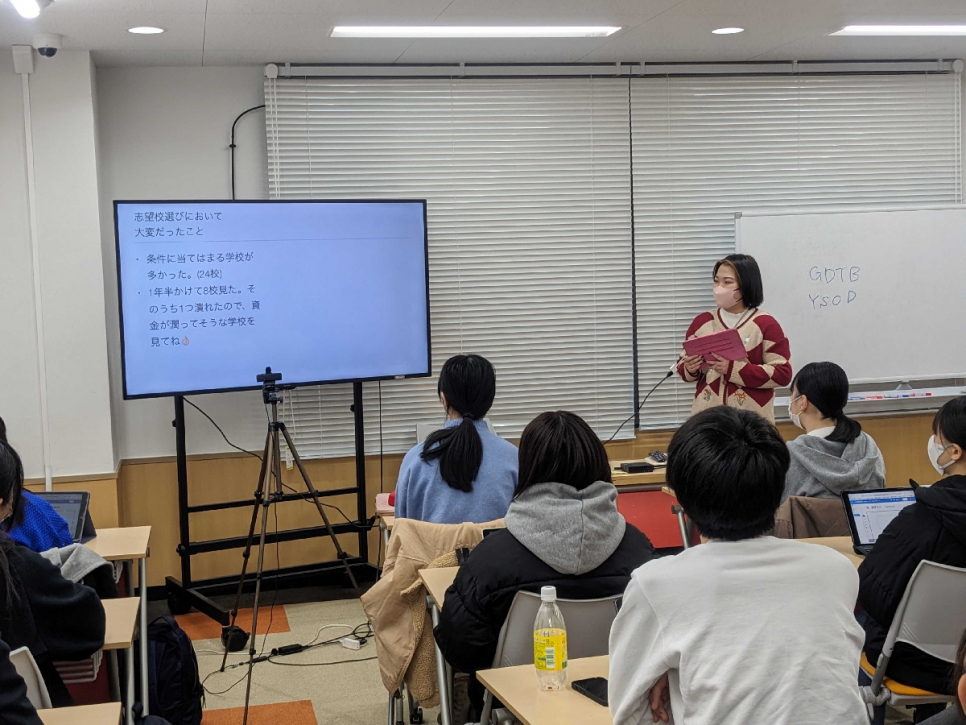 今回の発表者は4年制大学と専門学校に進学が決まった2人です。