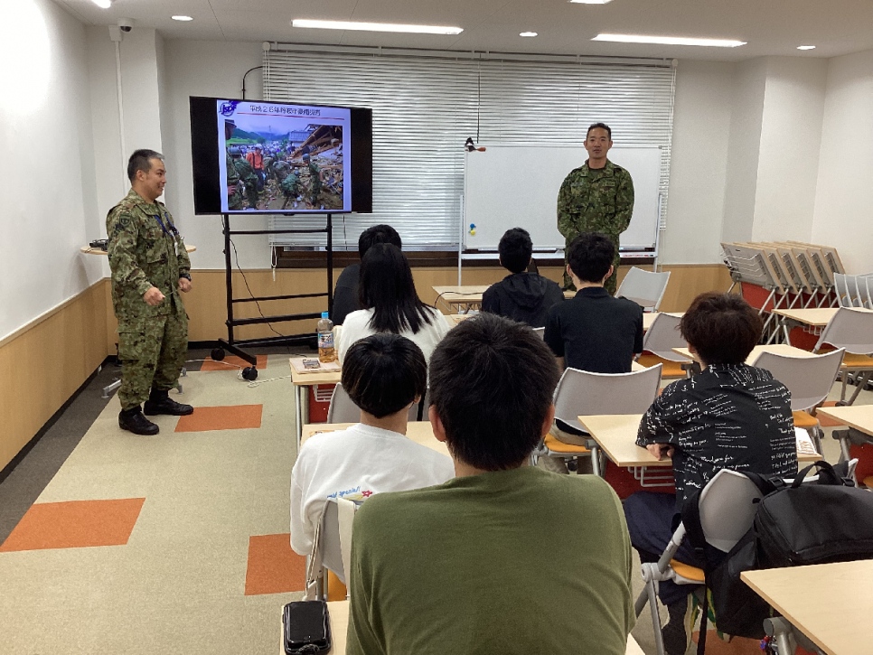 今日は、夢授業ということで自衛隊の方に来ていただき防災と応急手当ての知識について学びました♪