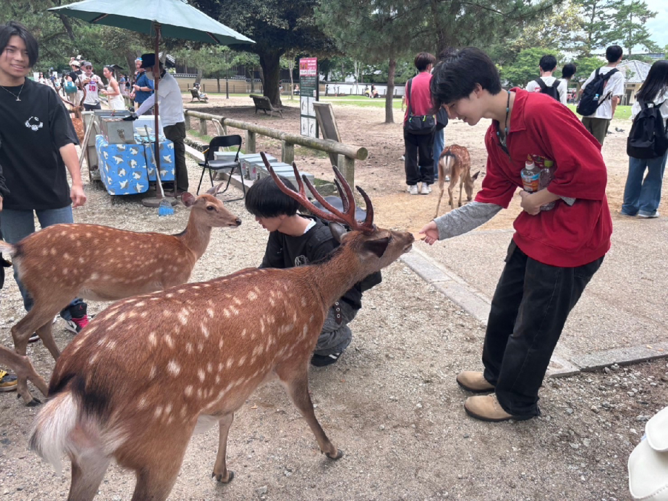 奈良公園では鹿せんべいをあげたり、氷に触れると文字が浮かび上がる氷みくじをしました。