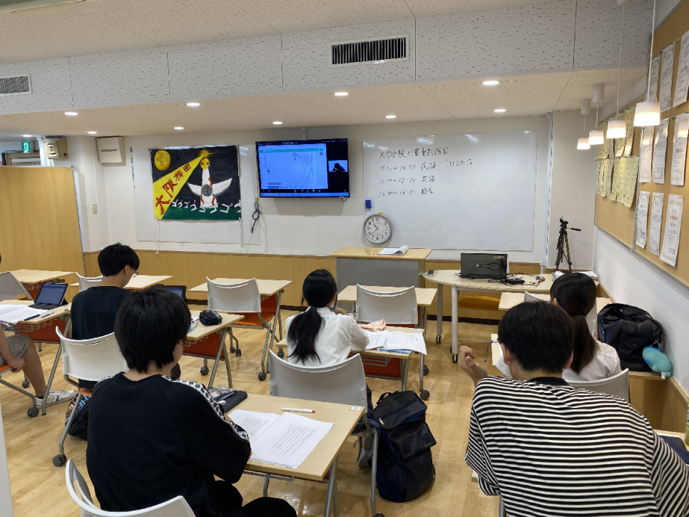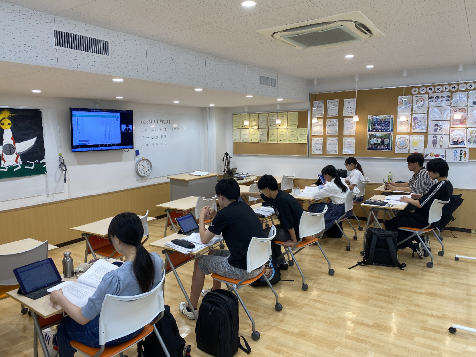 今日も、自宅で受講している生徒もいればキャンパスに来てみんなで受けている生徒もいました