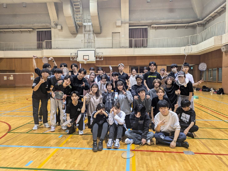 スポーツサークルでは、月に1度体育館を借りて、バスケットボールやバドミントンを行っています。