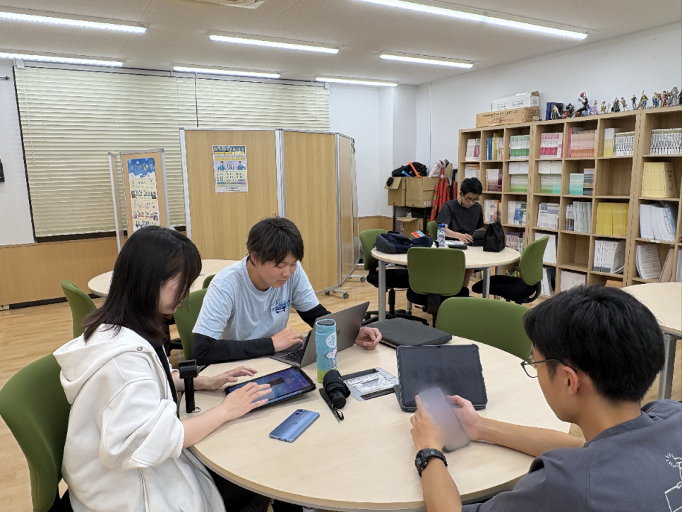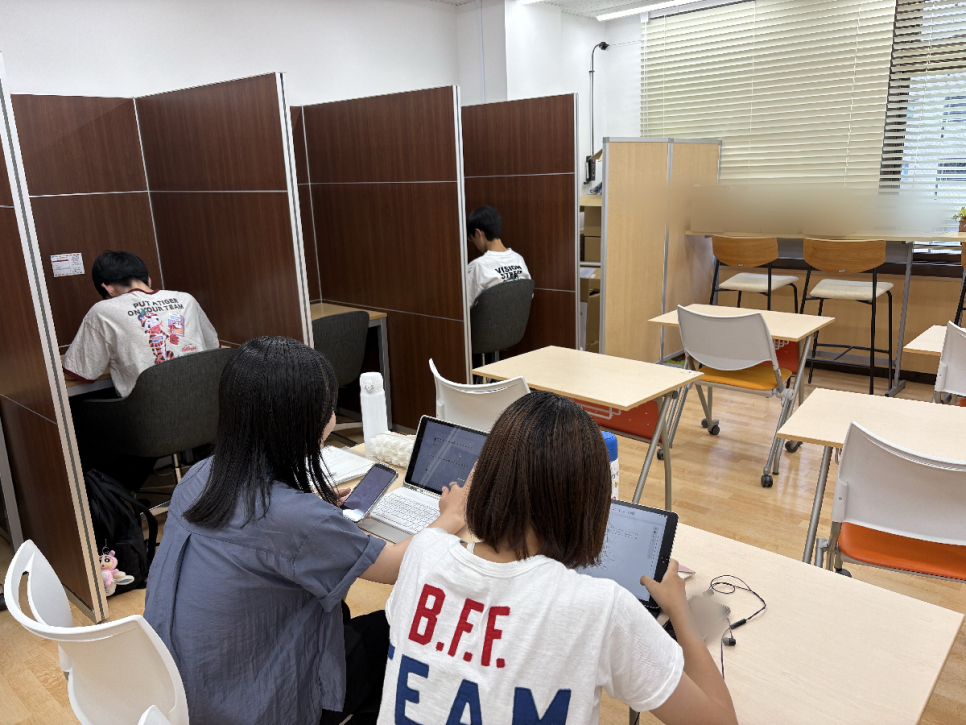 のんびり話をしている生徒、お友達と一緒にレポートを進めている生徒や個人で集中して勉強に取り組んでいる生徒の様子が見られました(^▽^)/♫