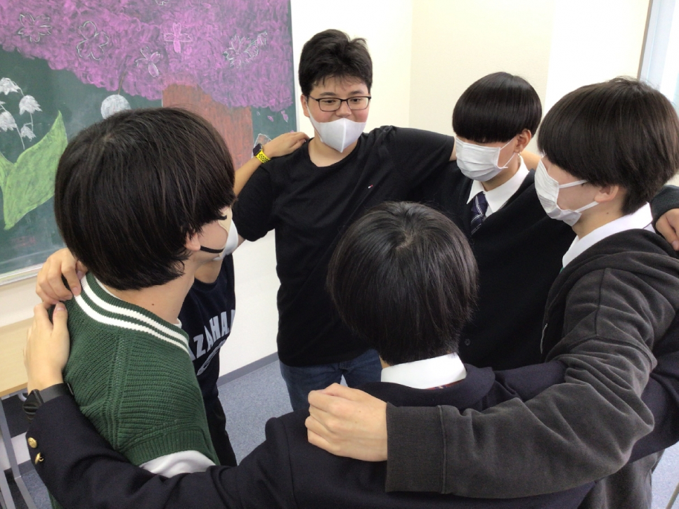 社会とつながる講座での1コマ(ワケあってみんなで肩組んで微笑んでます)