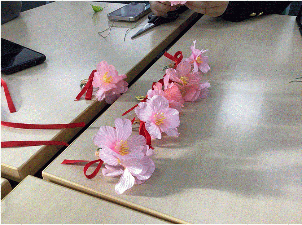コサージュ作成の様子
