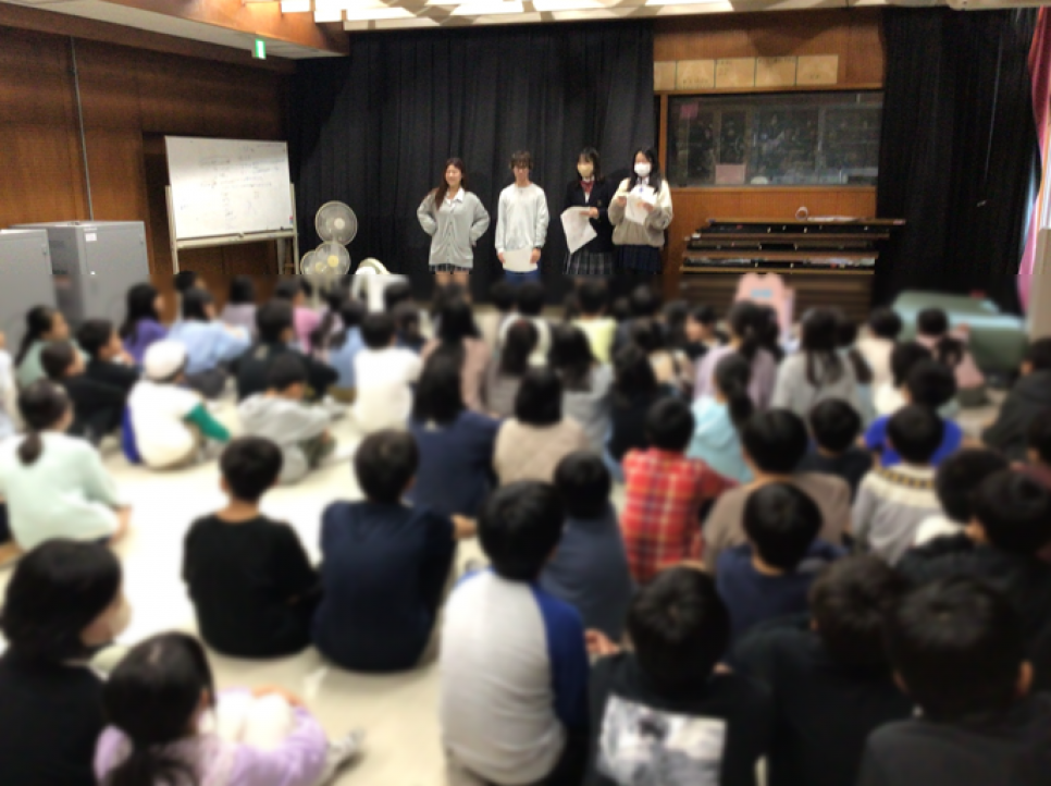 1年生はグループに分かれ、小学校や幼稚園に出向き