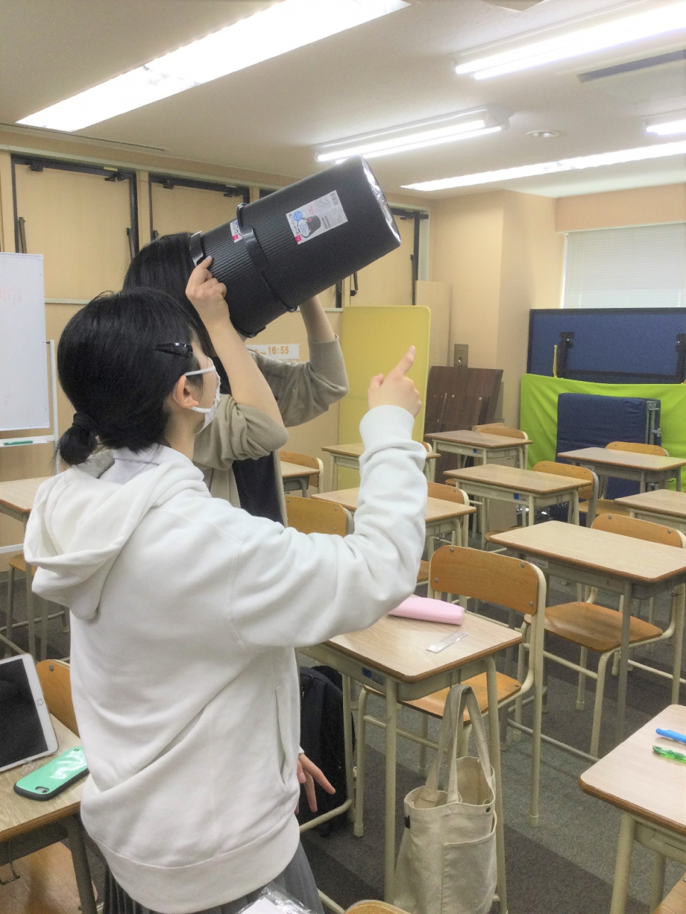 ゴミ箱の底を切り抜く作業が大変でしたが、皆さん協力して頑張っていました!