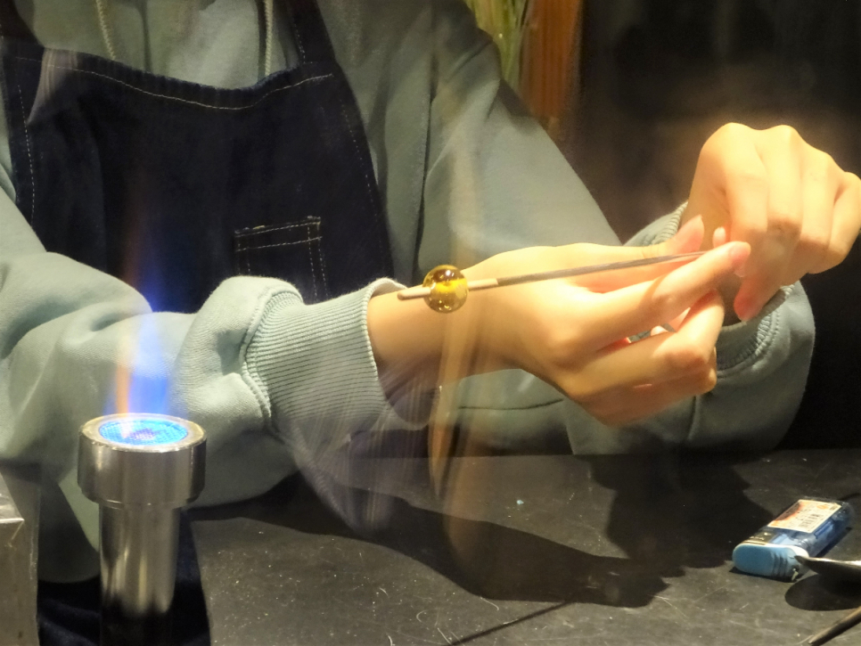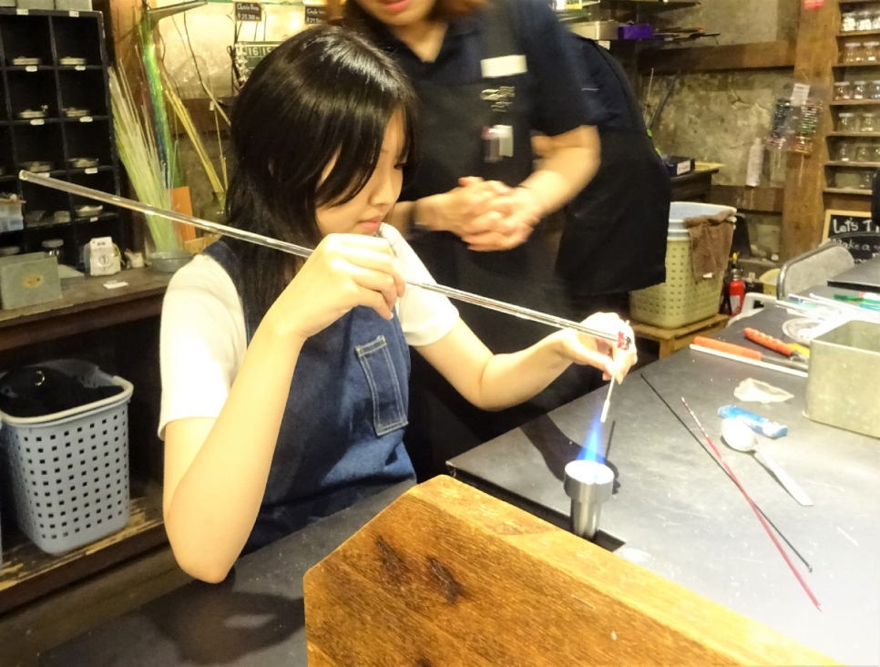 ガラス玉制作体験をしたり、アイスを食べたり、ステンドグラスを見に行ったりしました!!