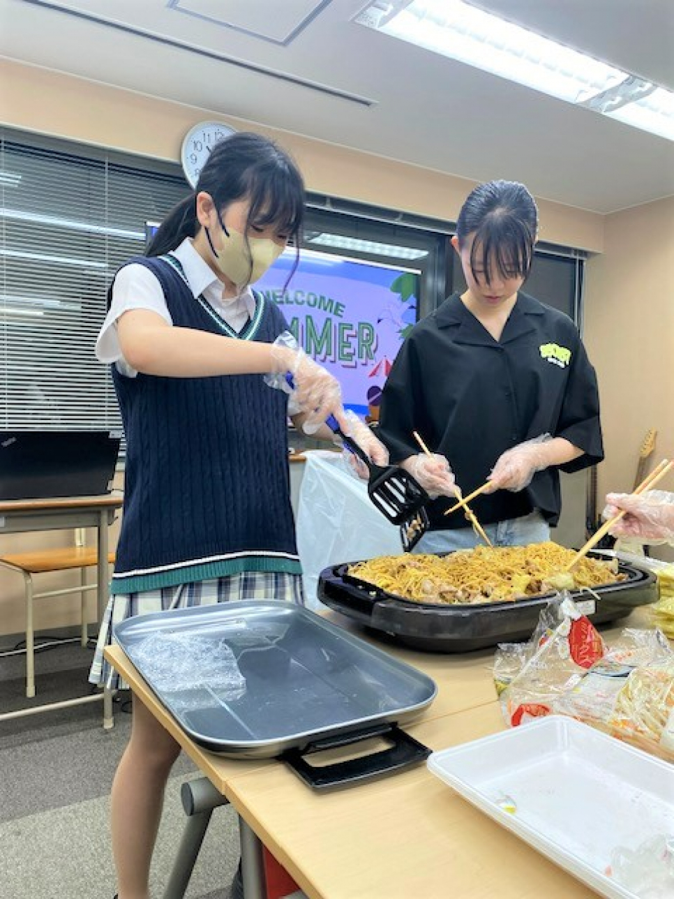 協力して30食分の焼きそばを作ってくれました!