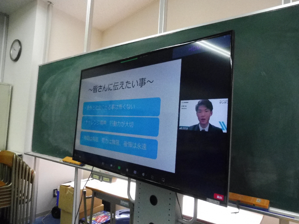 先日 株式会社一大通信様 、 株式会社ジンジブ様 をお招きし、社会人講話をしていただきました。