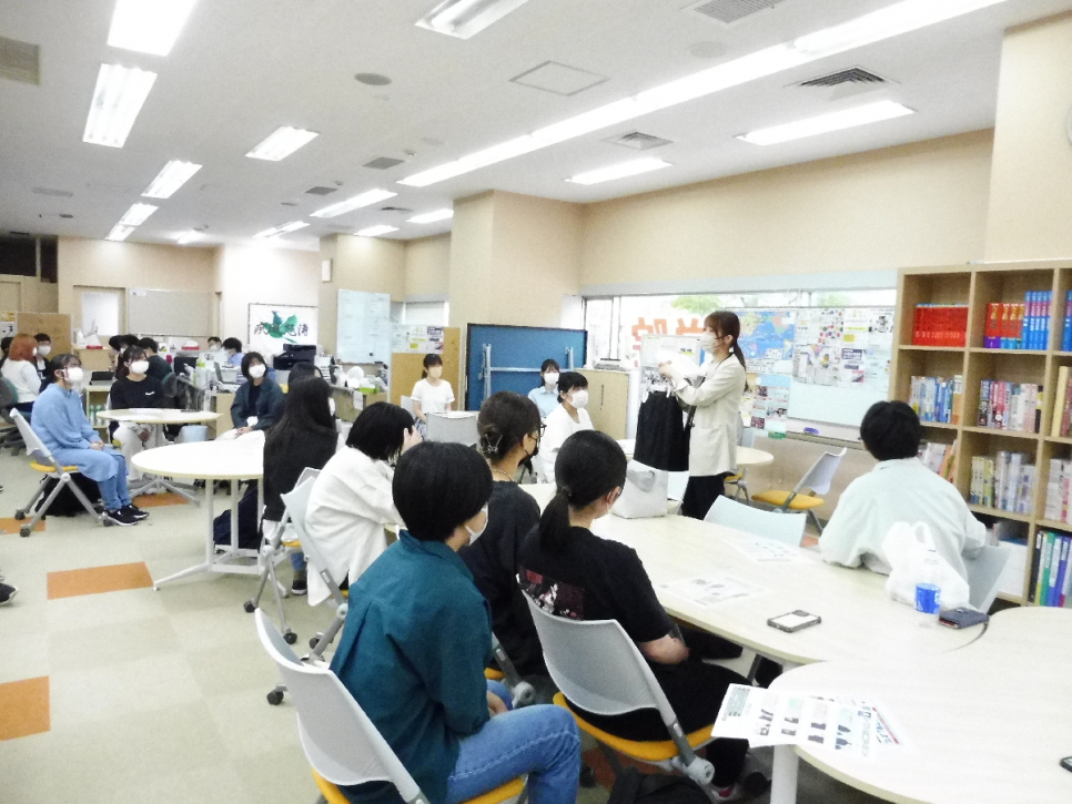 スーツはどういう時に着るのか?上着のポケットは出ているのが正解?女性のスーツの着こなし方は?…などスーツについてのあれこれを教えていただきました。実際にネクタイの結び方を教えていただき、だれが一番上手にネクタイを結べるか選手権 も行いました。制限時間がある中、だれが一番上手に結ぶことができるのか…真剣にやりつつ笑い声もあり、楽しみながら学ぶことができていたように思います。これで就職活動や進学時の面接もバッチリですね(^^)