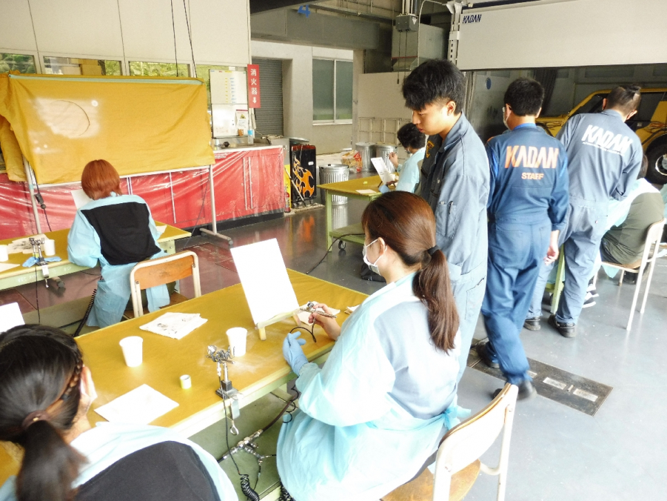 また、体験の中では車の塗装で使用するエアブラシを使った作品作りを行いました。