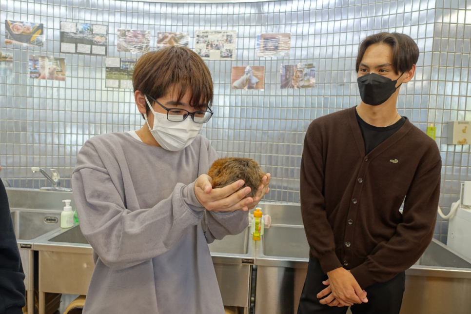 ペットと触れ合う中で大事なことを教えていただき、実際に動物とどう触れ合いながら学んでいるのかを見せていただきました。