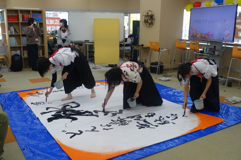 書道パフォーマンス!大きな紙面に書き上げました!衣装も素敵!