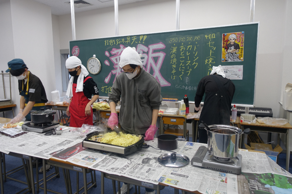 キャンパスに入るとすぐ焼き鳥&餃子のいい匂いが!