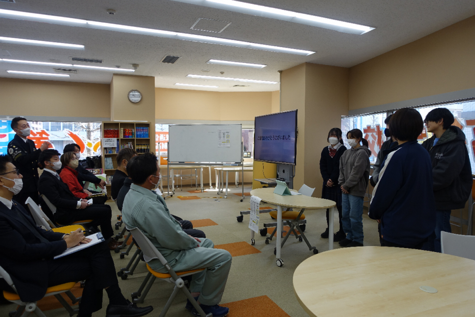 最初に代表生徒が進路ガイダンスで行った職場体験、企業の課題解決についての発表を行いました(^^)