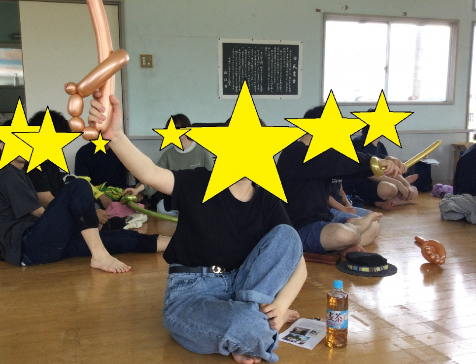 田植え活動終了後はバルーンアート講座が開催されました。 風船で剣を作ったのですが、生徒も職員も割れやしないかとハラハラしながら完成させました