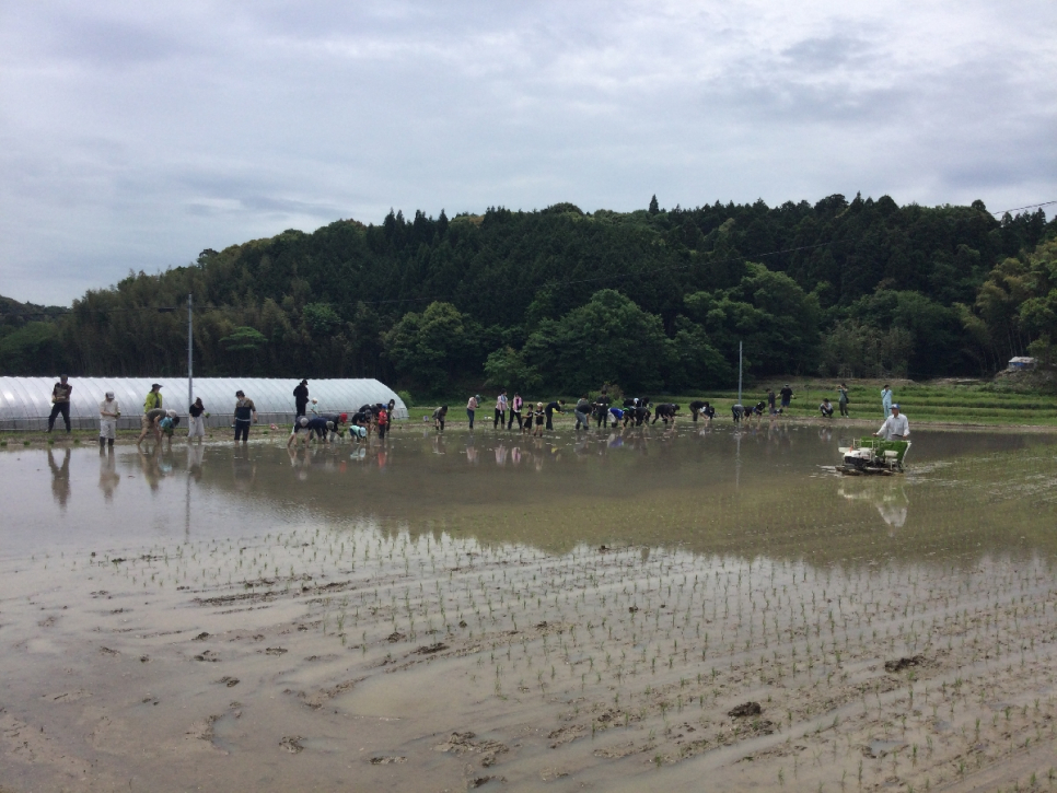 当日は親子連れの参加者も含め、たくさんの人数で田植えを行いました♪