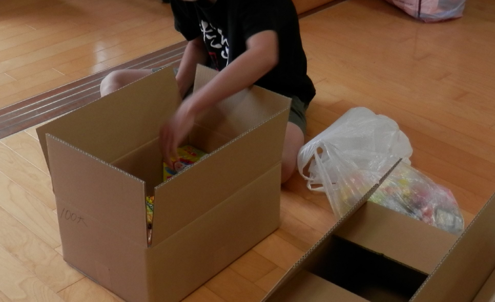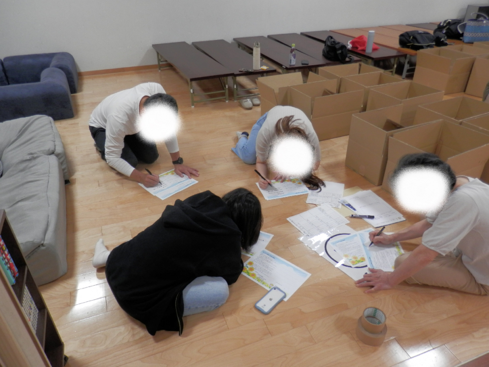 食べ物を箱に詰め、メッセージを添えて届ける活動がパッキングボランティアです。