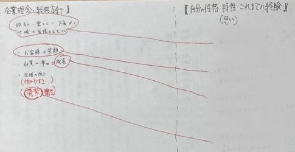 企業理念等と生徒自身に関して重なっている部分を見つけていきます