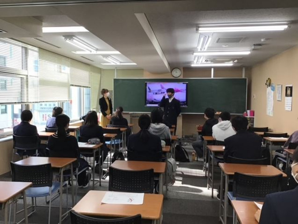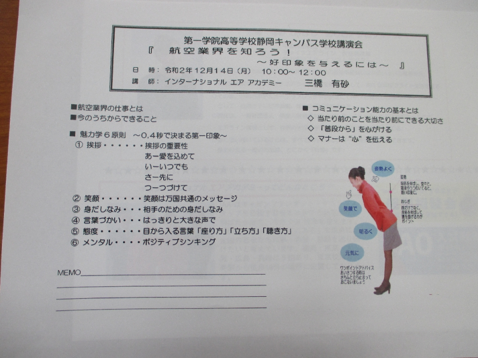 この日は2020年を締めくくる夢授業5連発シリーズの第一弾、インターナショナルエアアカデミー(IAA)の三橋有砂さんを講師に迎え、「航空業界を知ろう ~好印象を与えるには~」が開講されました。